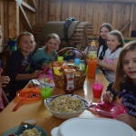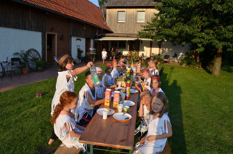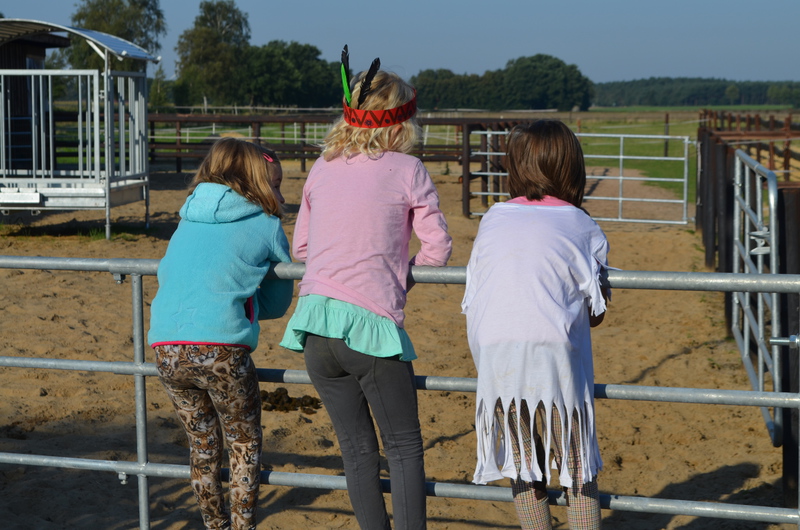 Neben individullen Reitunterricht für jedes Kind, gab es am Samstag ,nach einer Stärkung vom Grill, eine große Schatzsuche. Davor wurde jedoch gebastelt. Jedes Kind bemalte sein eigenes Indianer-shirt und einen Kopfschmuck, der Kreativität waren keine Grenzen gesetzt. Im Indianerdress wurde dann am Abend erfolgreich der Schatz gefunden, bevor es dann gemütlich ans Lagerfeuer mit Stockbrot ging. Für die Kids folgte dann noch eine Kinder Disco in der Reithalle, bevor alle müde ins Bett fielen ;)