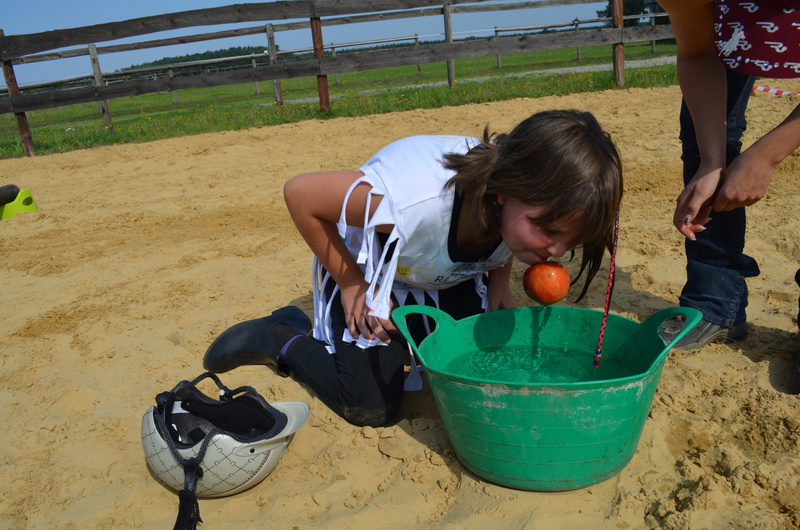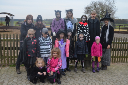 Die Kinder starteten bei den Reiterspielen in zwei Gruppen nebeneinander und verdienten sich im Anschluss köstliche Leckereiern unseres gruseligen Buffets.