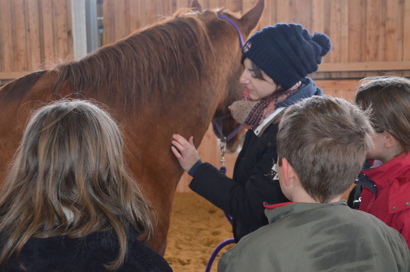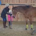 Für das kontrollieren der PAT-Werte, sowie das Anlegen eines Verbandes und erkennen von Krankheitssymptomen standen den Kindern brave Schulpferde zur Verfügung.