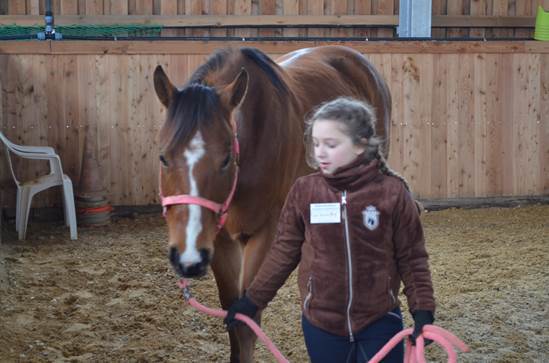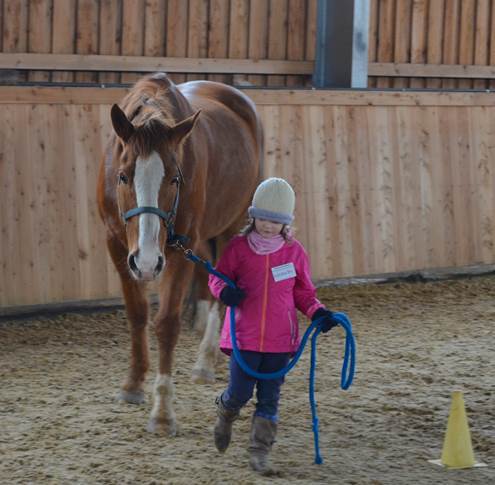 Mit den Pferden ging es dann in die Halle zum Führtraining. Gemeinsam besprachen wir die Sicherheitregeln im Umgang mit dem Pferd anhand von praktischen Beispielen.