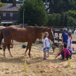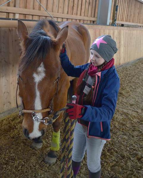 Die erste Gruppe von ,,Horse & Kids" ist mit 5 Kindern im Alter zwischen 4 und 6 Jahren ist im Januar erfolgreich gestartet. Für das Reitprojekt steht den teilnehmenden Kindern unser braves Schulpferd Billy zur Verfügung. Mit Billy lernen die Kleinen das 1x1 der Pferdeflege und den Umgang mit dem Partner Pferd, sowie dem ersten Kontakt auf dem Pferderücken, bis hin zu leichten Voltigierübungen um das Gefühl der Bewegung zu erlernen.