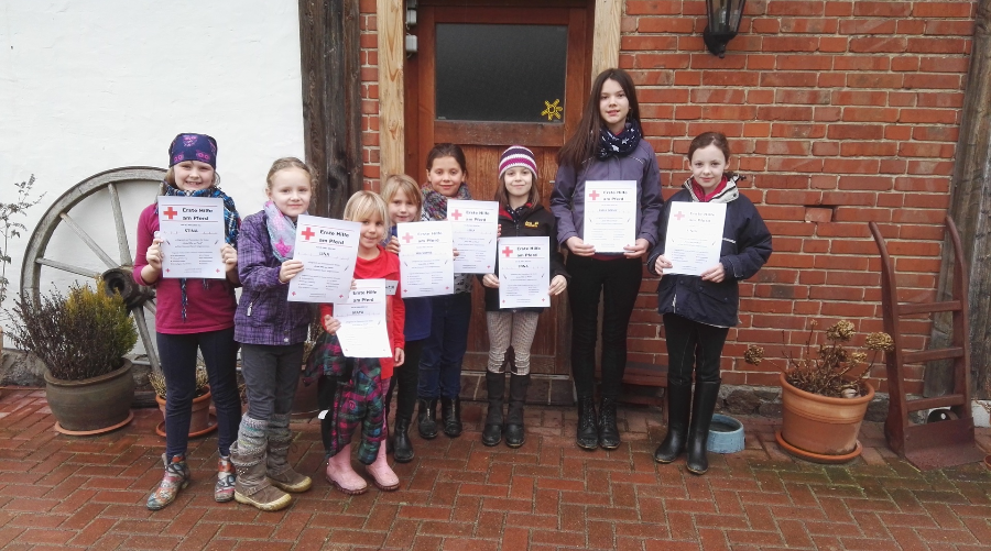 Kurse statt. In Theorie und Praxis lernten die Kinder wie sie bei einem Unfall helfen können, wie sie ein verletztes Pferd versorgen können bis der Tierarzt eintrifft und welches die häufigsten Krankheiten sind.